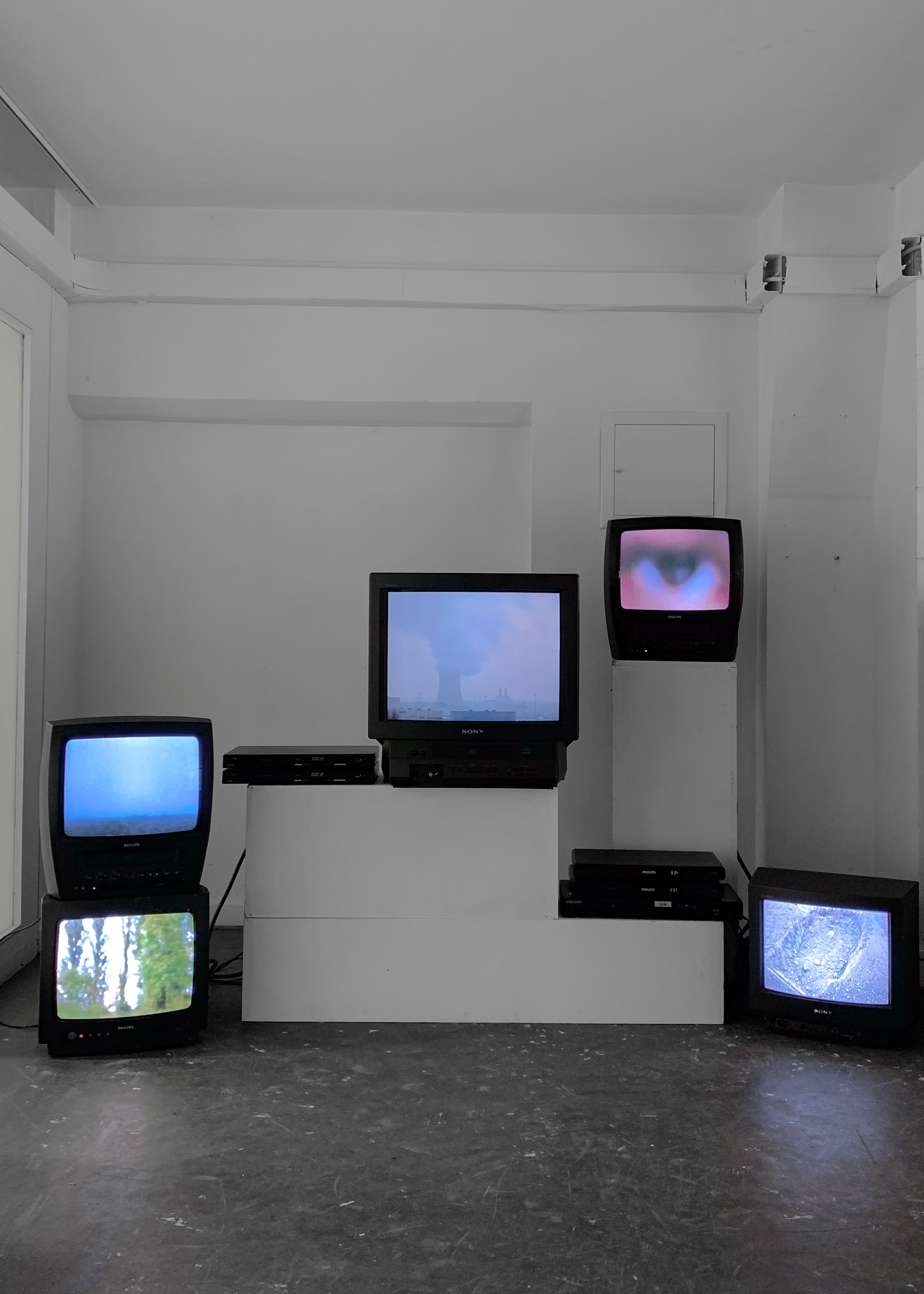 The videos start randomly. There is no specific beginning - or end; the installation plays like several loops that play continuously, respond to each other and merge.