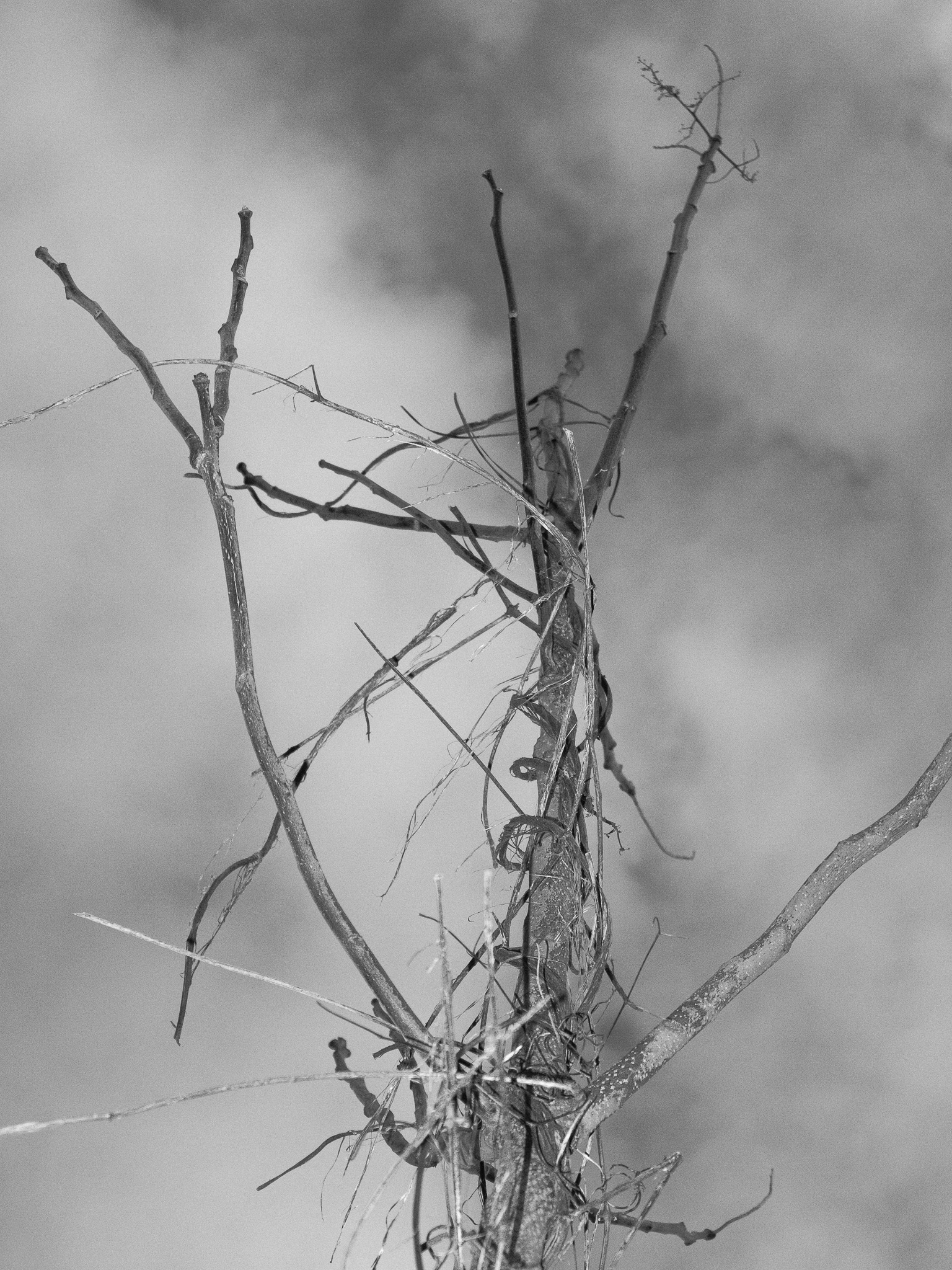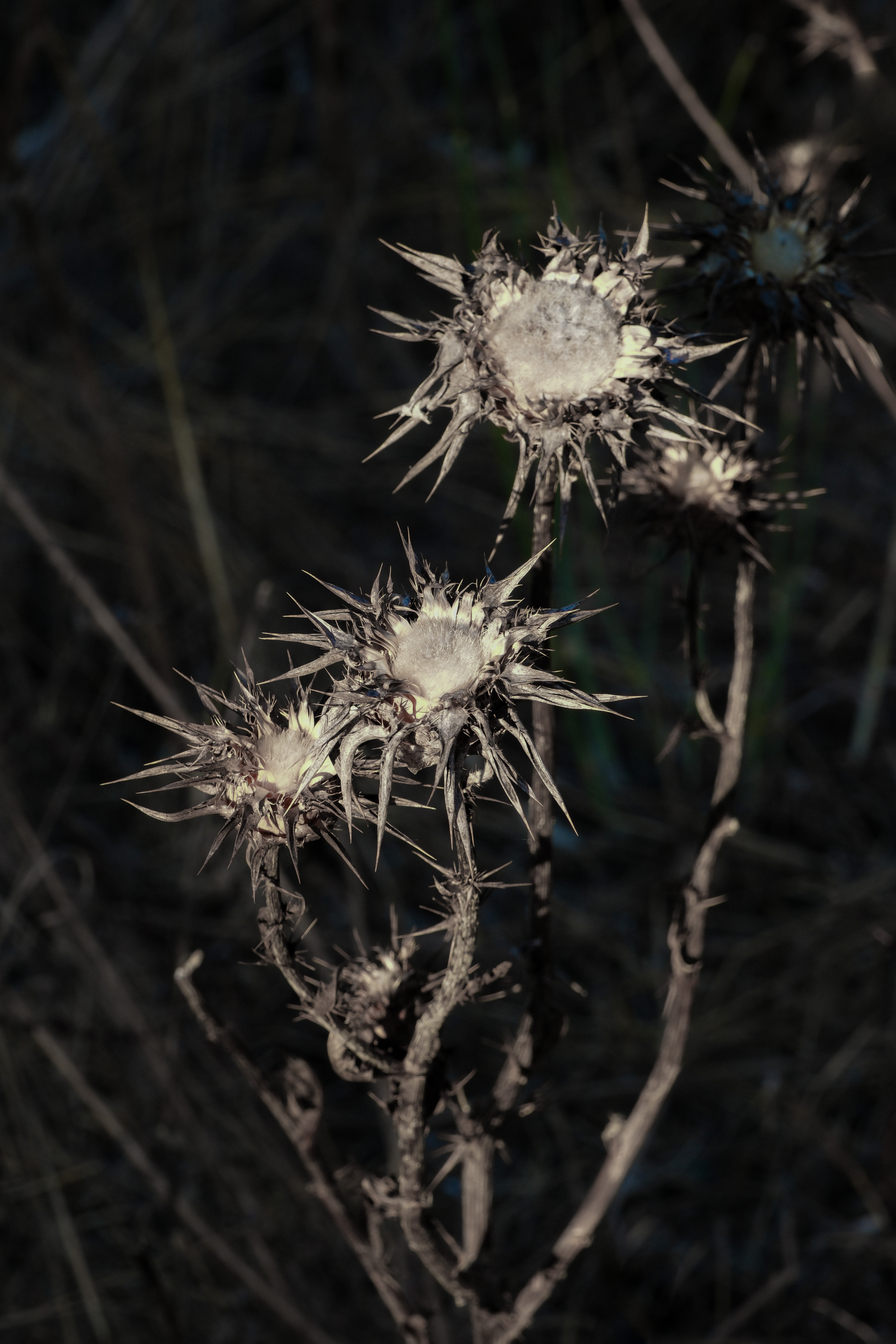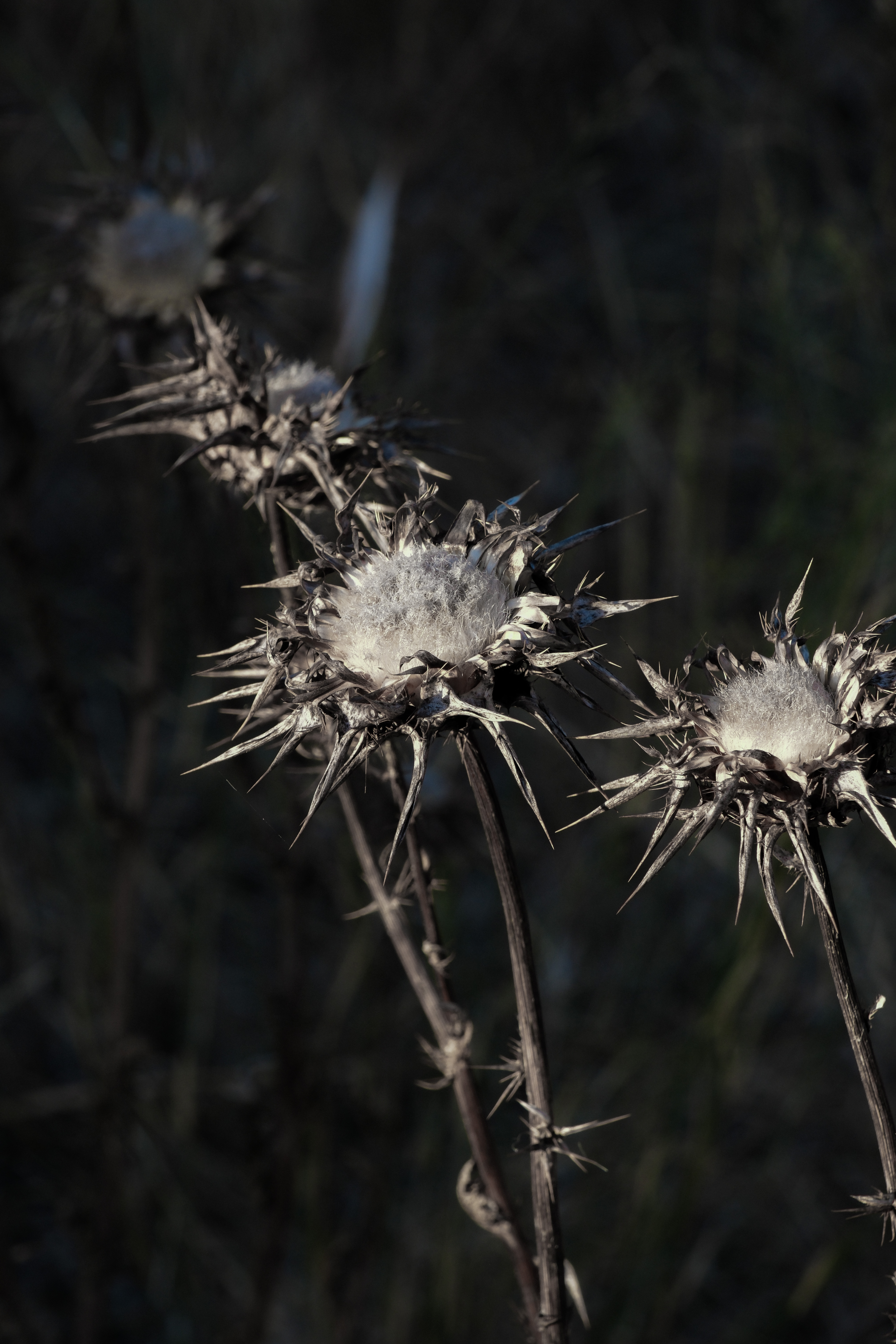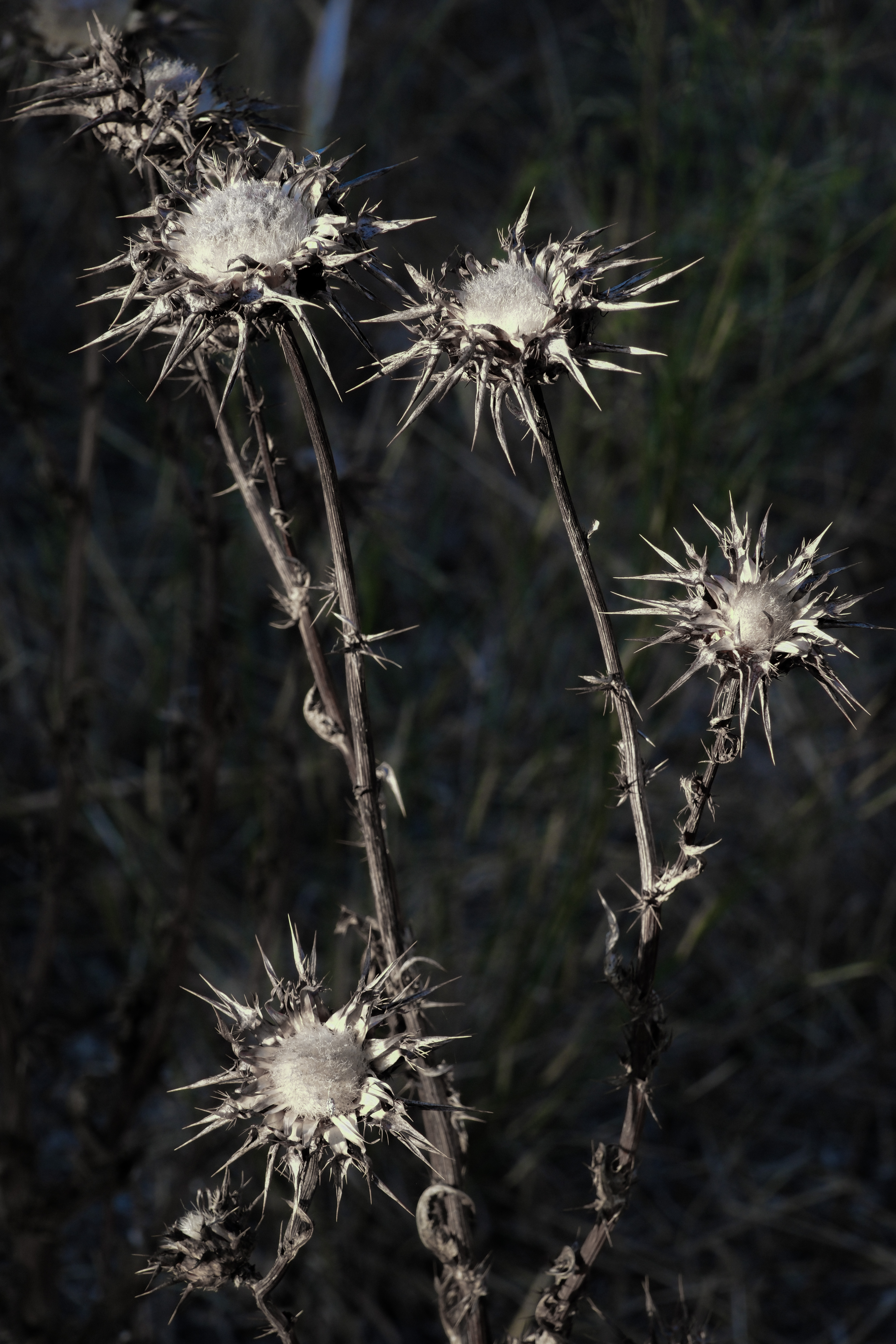 But dry stems remain, flowers burned by light and heat, frozen by the passing of time,